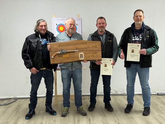 18 Mitglieder und Angehörige der Familie Sailer trafen sich am Sonntag, 30.11.25 zum Werner-Sailer-Gedächtnisschießen. Das Schießen wurde als Ausscheidungsschießen in den Disziplinen Luftgewehr, KK liegend und Vorderlader Pistole ausgetragen. Nach 20 Schuss mit dem Luftgewehr und 10 Schuss mit dem KK-Gewehr haben sich 6 Schützen für das Finale mit der Vorderlader Pistole qualifiziert. Michael Raidt, Marcus Bodamer, Felix Trescher, Michael Sailer, Klaus Hönle und Rainer Sailer haben sich, mit der nicht ganz einfachen Disziplin Vorderlader, gemessen. Am Ende konnte sich Michael Raidt mit 296 Ringen durchsetzen und seinen Sieg von 2023 wiederholen. Er bekommt damit eine weitere Plakette auf der Ehrentafel. Spannend wurde es um Platz 2. Die beiden Ringgleichen Michael Sailer und Marcus Bodamer mussten ins Stechen. Zur Überraschung und Begeisterung aller wurde das Stechen mit dem Blasrohr ausgetragen. Hier hatte Michael Sailer das bessere Ende für sich und holte den zweiten Platz.